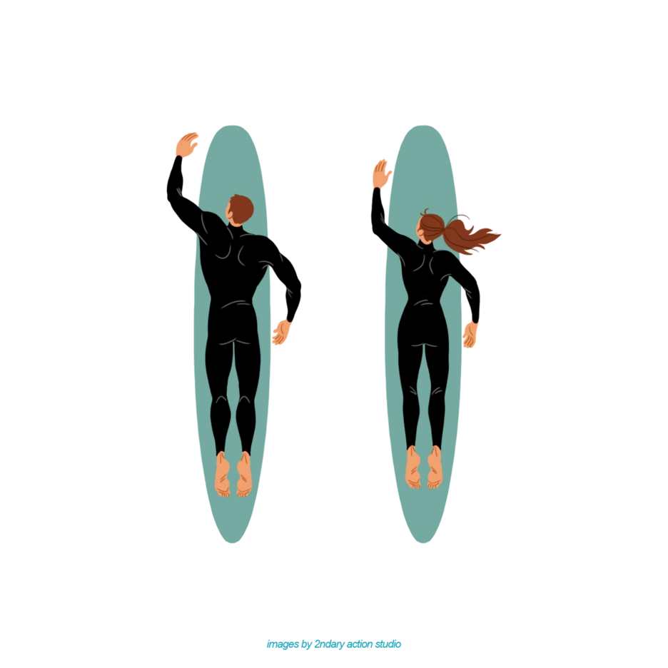 실제로도, 대부분의 스펀지 보드의 와이드가 24~25인치 정도이기에, 어깨가 너무 불편하거나 힘들다고 느끼신 분들이 많을 거예요. 자신의 어깨에 비해 너무 넓지 않은 보드를 선택하는 것이,패들링의 효율을 높일 수 있는 최선의 방법입니다.