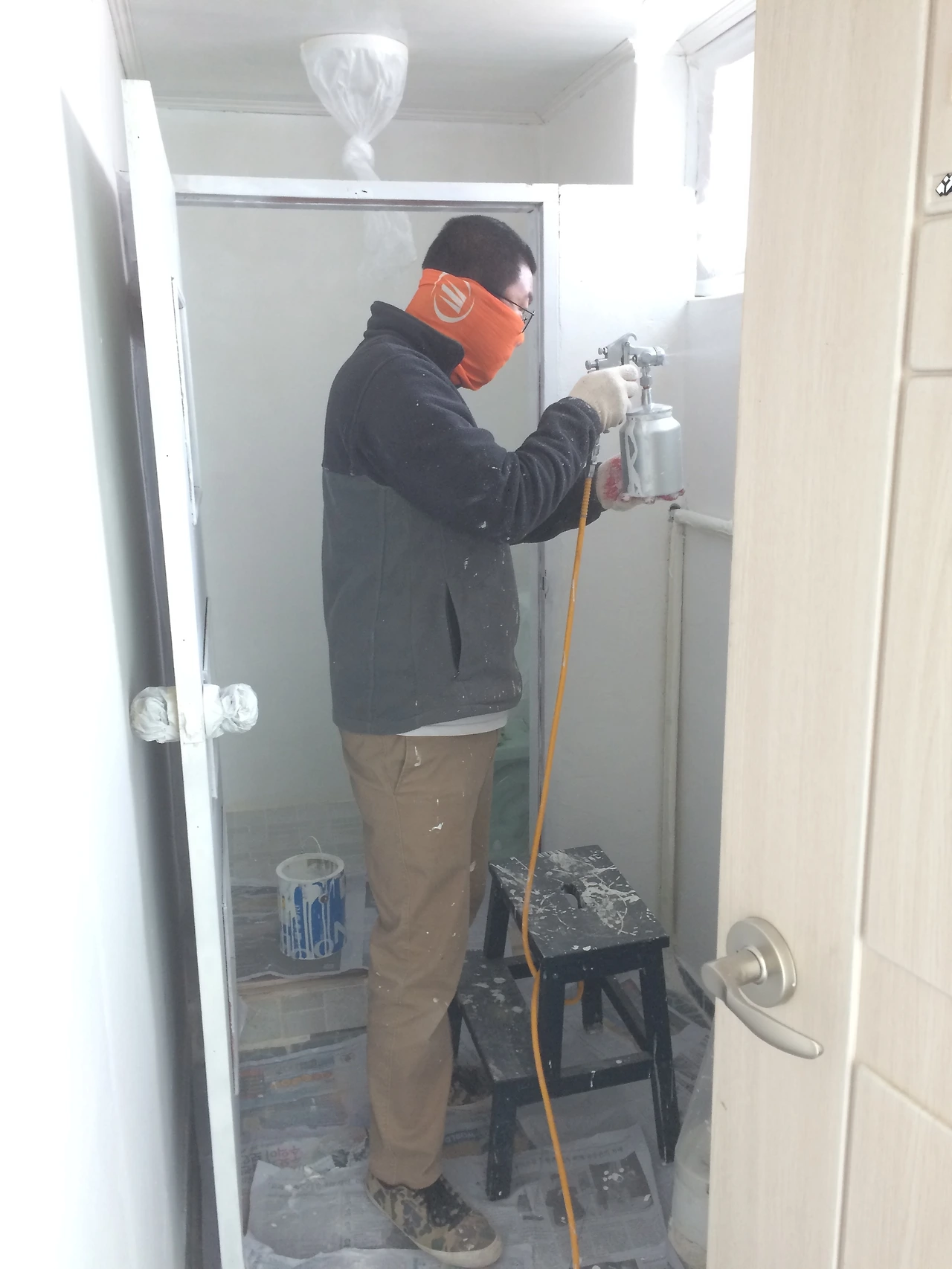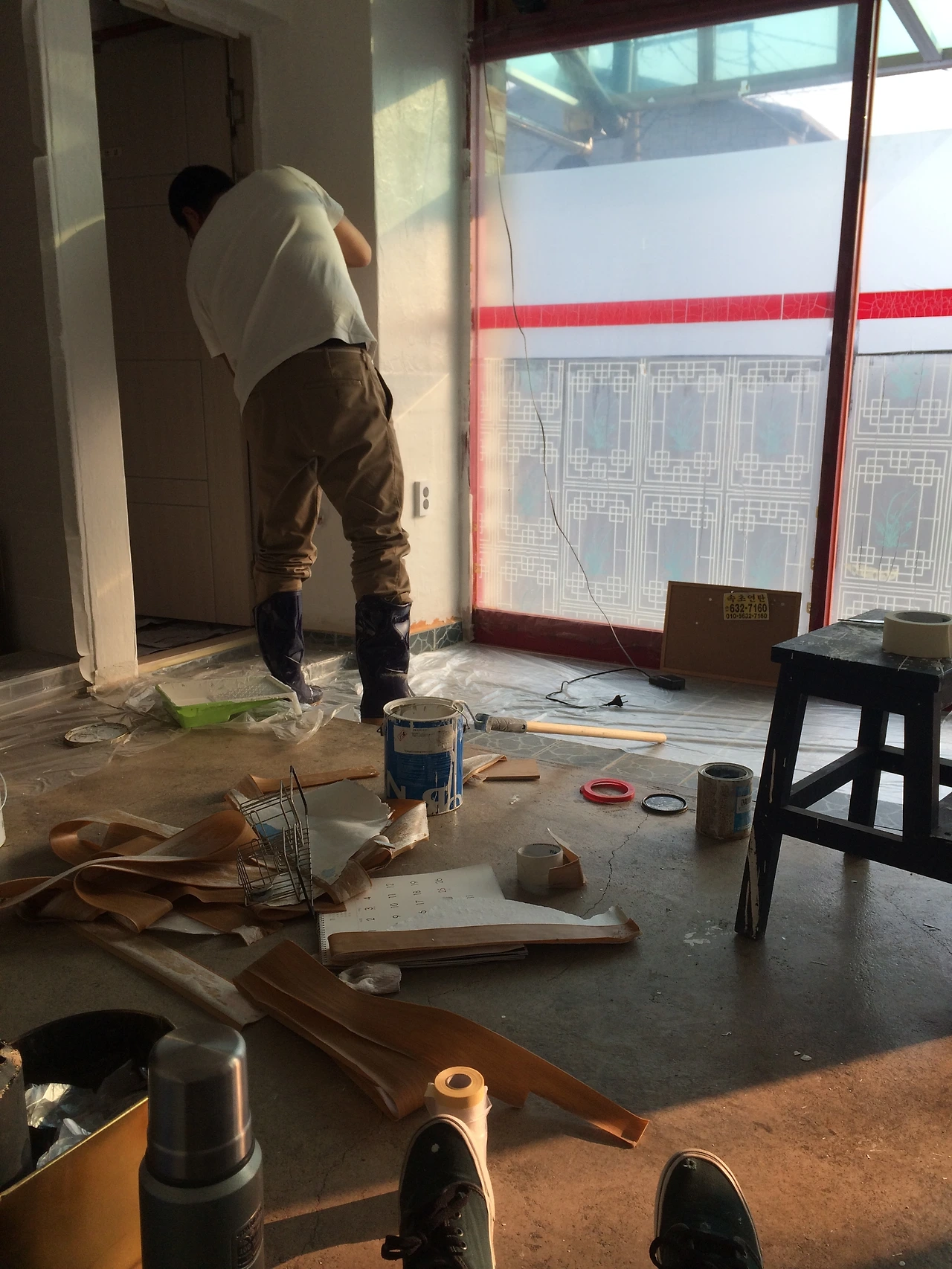 집주인의 배려로 이사 전에 미리 여러 가지 작업들을 진행할 수 있었는데, 일단 가장 바탕이 되는 페인트 칠과 여러 가지 정리정돈을 시작했다. 매일매일 가진의 집과 이곳을 오고 가며, 노루표 수성페인트에 흠뻑 취해가며, 하얀 페인트 가루가 여기저기 묻어 나오는 나날이 계속됐다. 그나마, 기존에 엉망인 벽은 아니기에 벽지 위에 바로 페인트 칠을 할 수 있었기에, 생각보다 빨리 일을 끝낼 수 있었다.