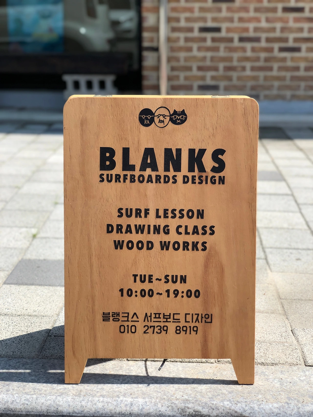지금은 날씨가 좋고 정상 영업 중일 때 이 간판을 숍 앞에 꺼내어둔다.