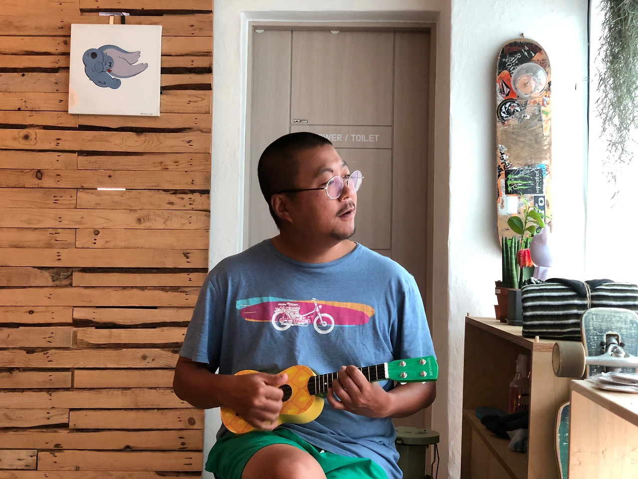 노란 우쿨렐레가 문 앞에 놓여있었다......