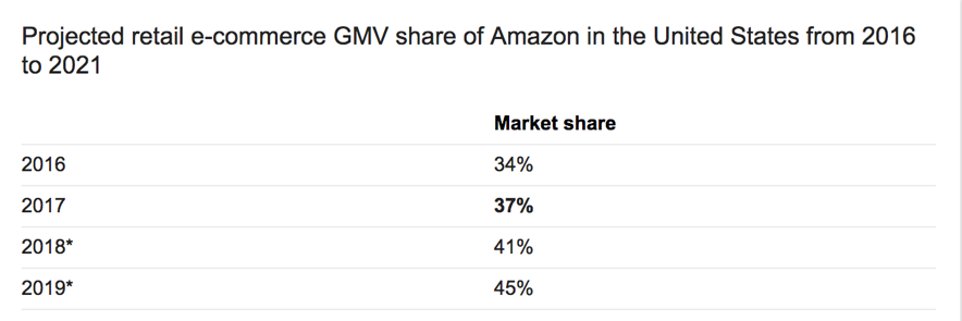 미국에서 아마존의 시장 잠식력이 어느 정도인지 감이 오지 않는다면 다음을 보자.
