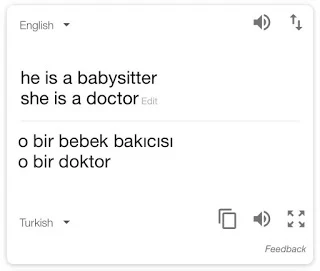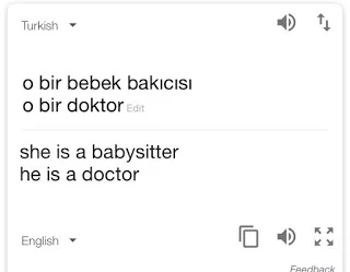 얼마 전 구글 번역기 (google translator)과 관련된 흥미로운 트윗을 보았다. 3인칭 단수 대명사의 성별의 구별이 없는 터키어와 영어 사이의 번역에 관한 트윗이였다.