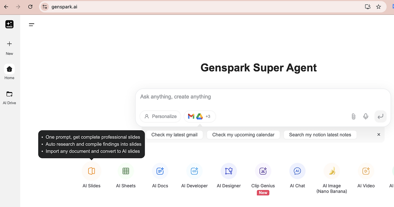 Genspark PPT AI 제작 기능은 메인 화면에서 쉽게 찾을 수 있습니다. [바로가기 링크]
