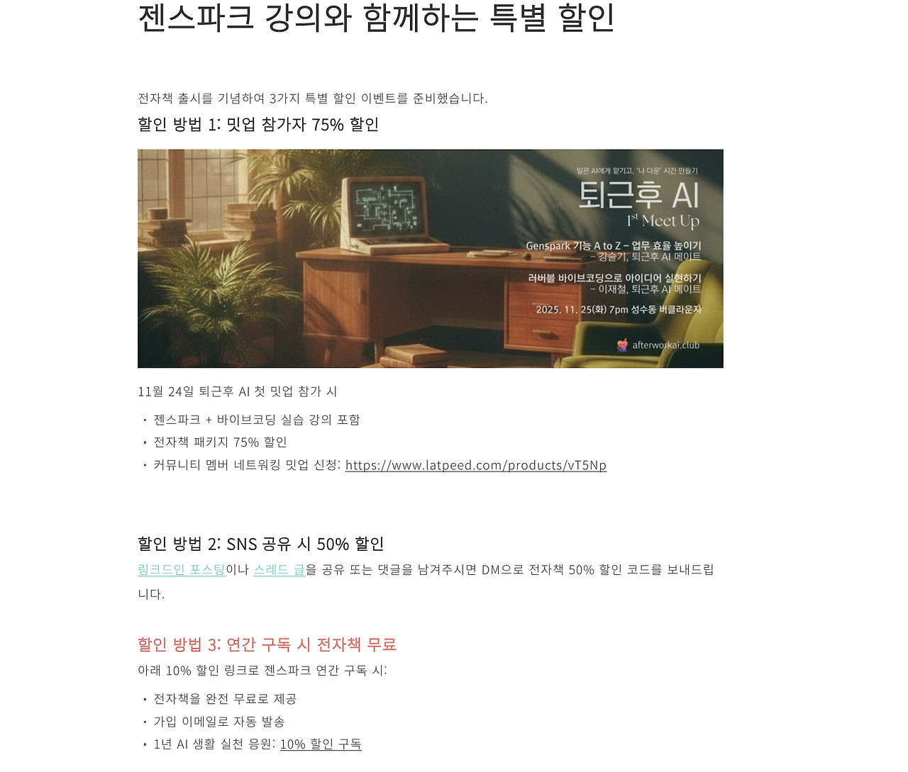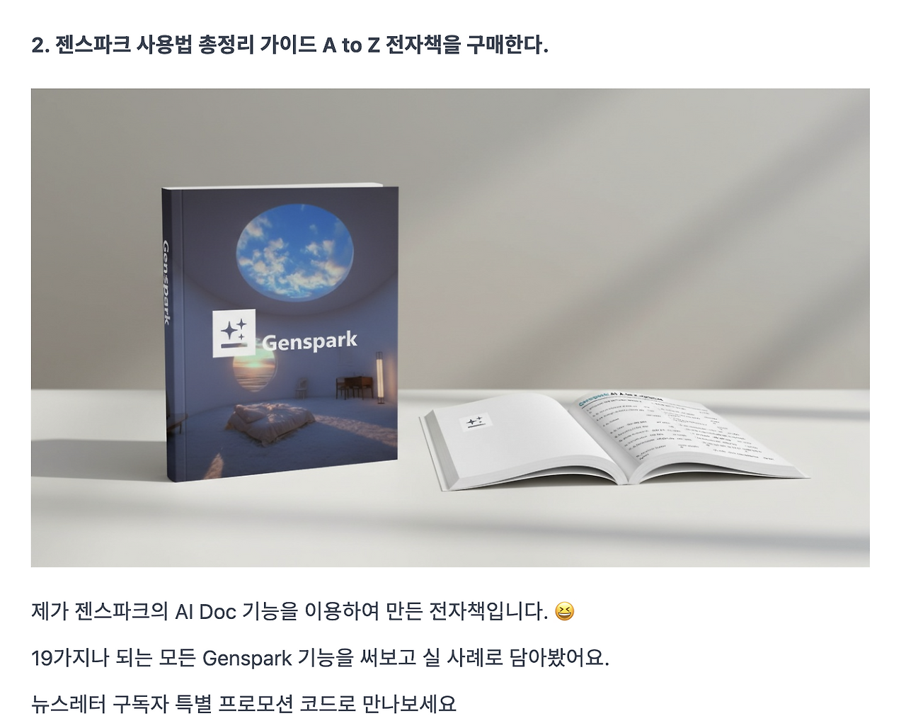 * 위 할인 링크로 연간 구독 후, 연간 구독 완료 화면을 sasya87@gmail.com로 보내주시면 Genspark 전자책을 무료로 발송해드립니다.