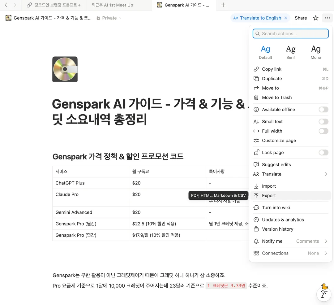 그러다 젠스파크의 AI Doc(AI 문서) 기능이 떠올랐습니다.
