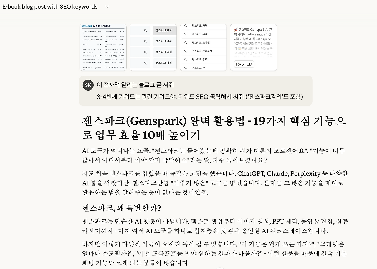 '전자책 만드는 법', '전자책 AI', '젠스파크 매뉴얼' 등을 검색하시는 분들은 이미 구매 욕구가 있는 분들이기 때문이죠. 같은 조회수도 전환율, 가치가 달라요!
