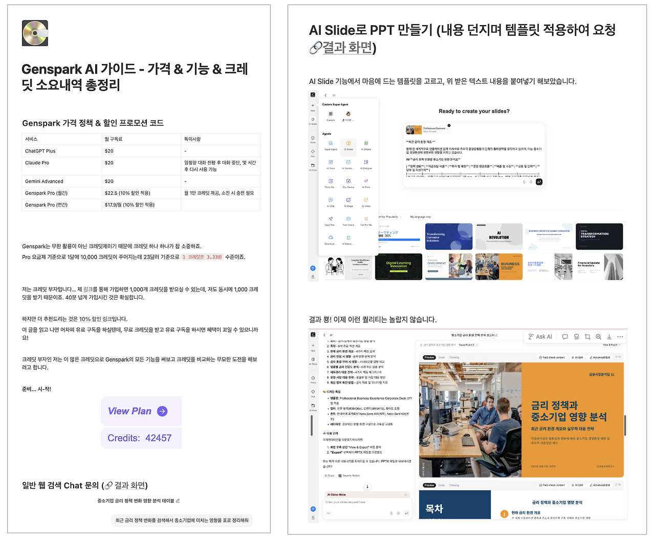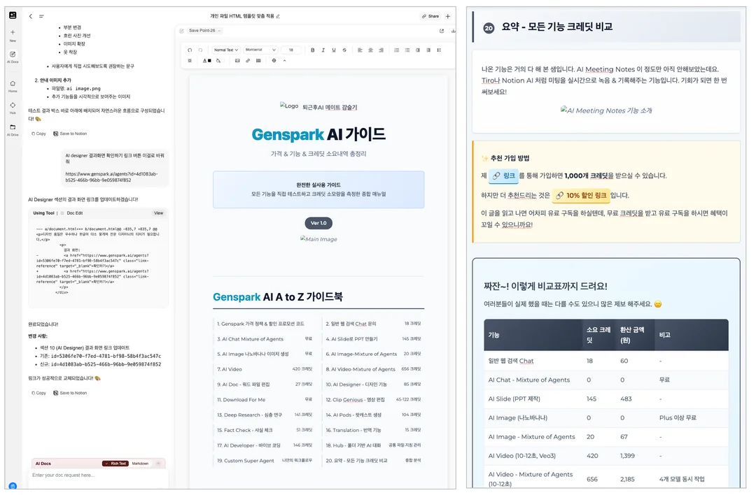 이 링크에서 젠스파크 vs. 타 AI 툴 비교, 크레딧 절약 팁 등을 확인하세요.