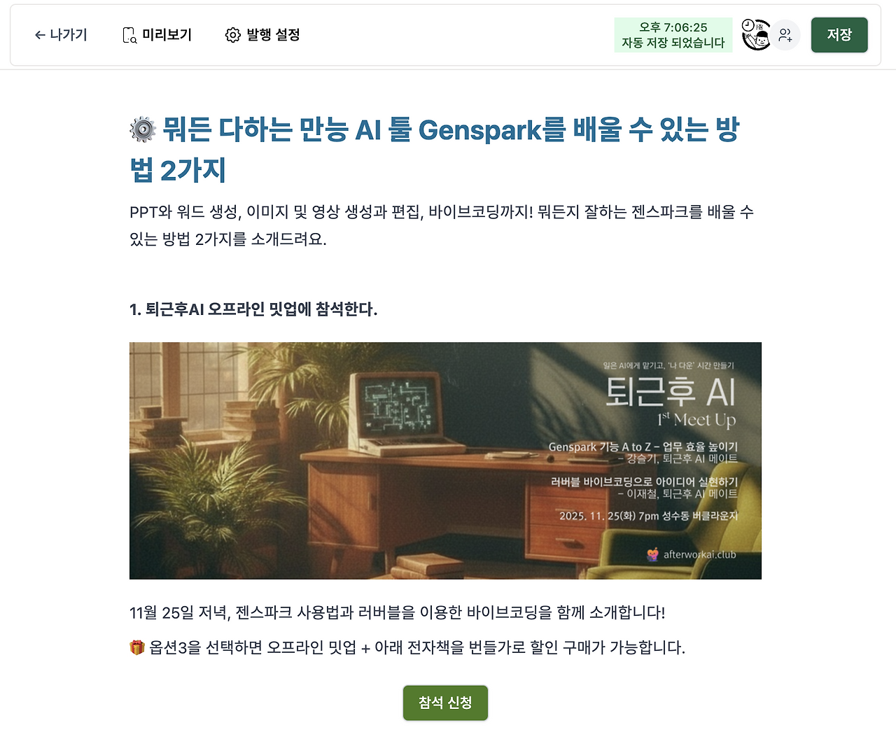 실제 과제 인증을 통해 젠스파크를 제대로 배워보고 싶은 분들은 신청해주세요! :)