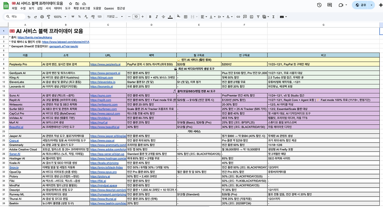25년 블랙 프라이데이에 AI 서비스 구독료 할인하는 곳에 대해