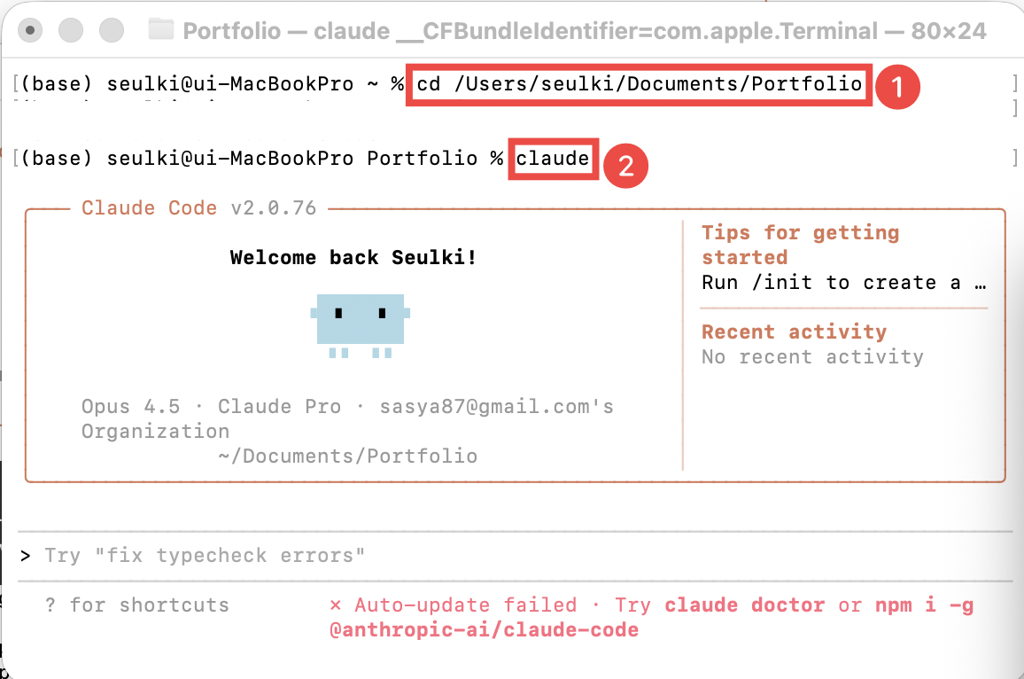 개발이 필요한 폴더 안에서 클로드 코드가 소환이 돼요.