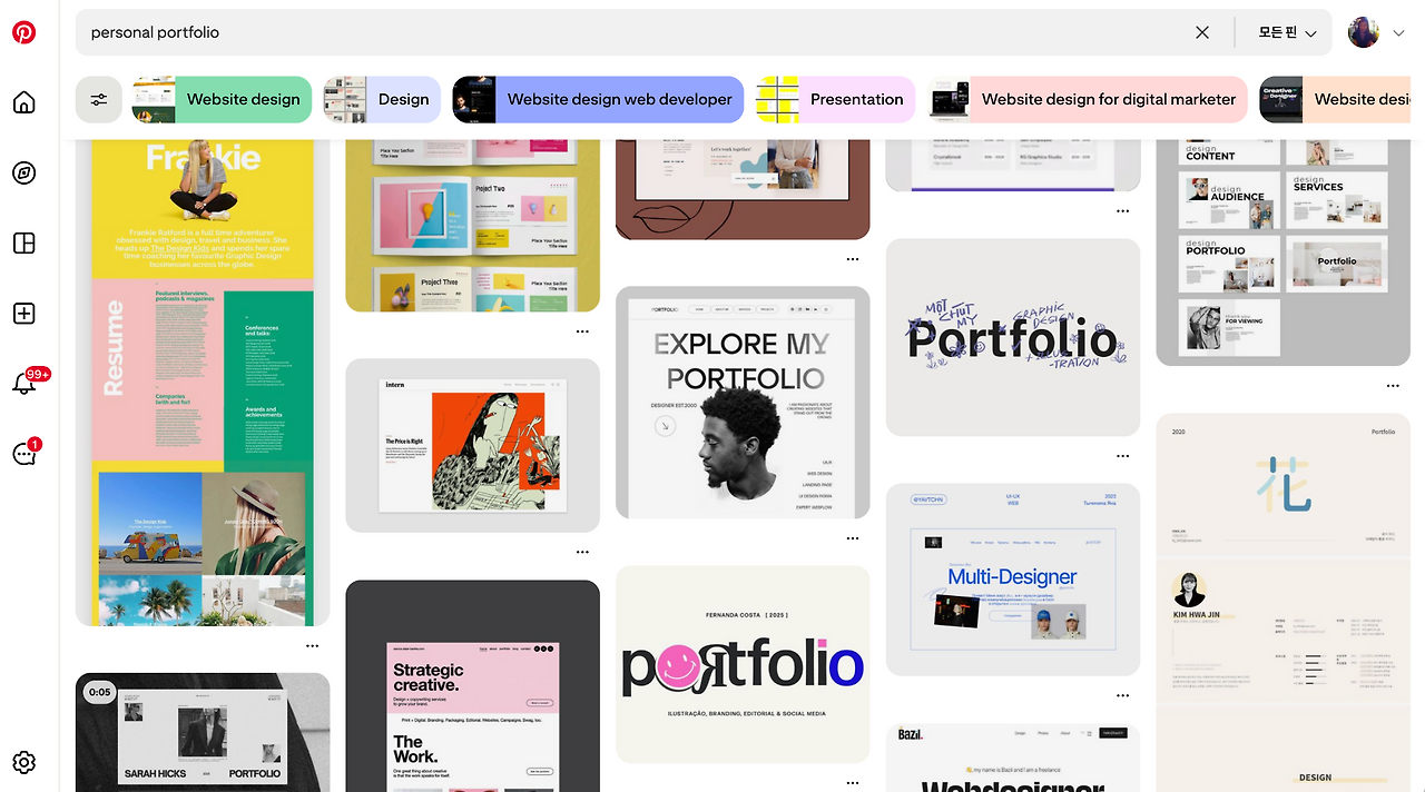 핀터레스트에서 'Personal Portfolio'를 검색했어요.