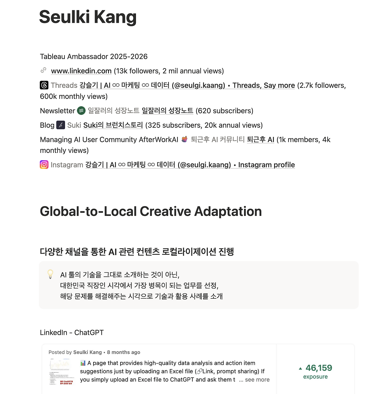 ❷ 저의 여러 채널 커버리지 (링크드인, 스레드, 블로그, 뉴스레터)