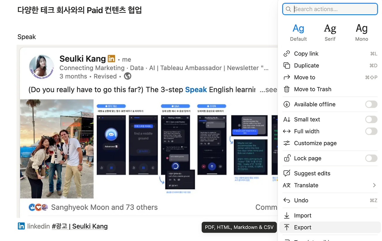 이렇게 받았는데 원하는 꼭지을 추려서 노션에 넣고 내용을 채우기 시작했어요.
