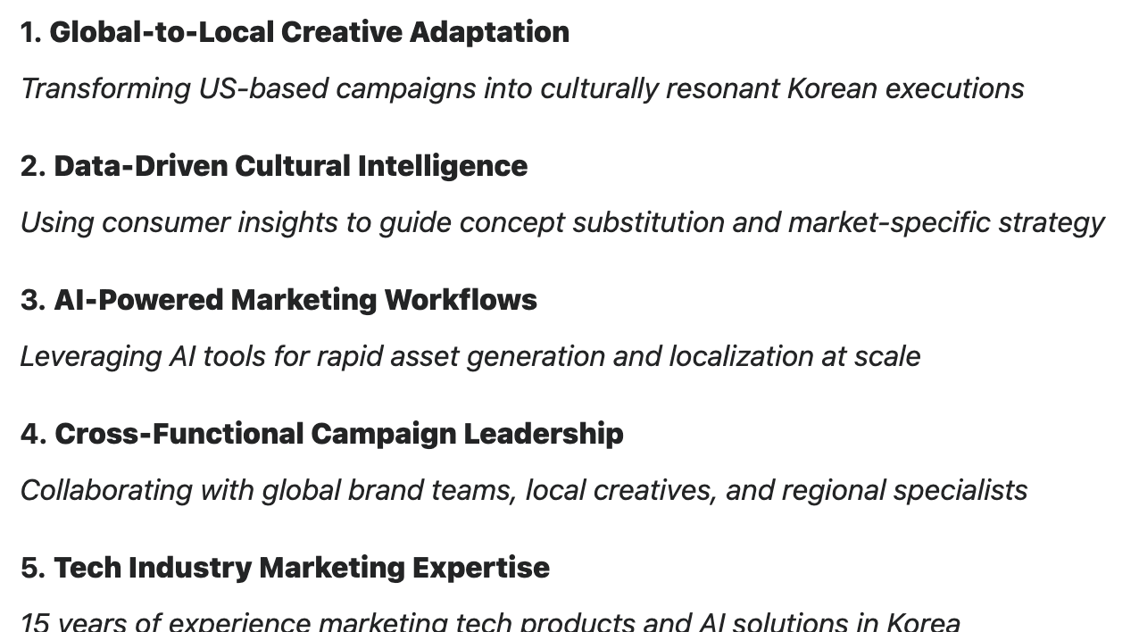 함께 일한 회사들 로고들을 주면서 '슬라이드 효과 주고, 각 업무 별로도 관련 로고를 넣어줘' 라던지