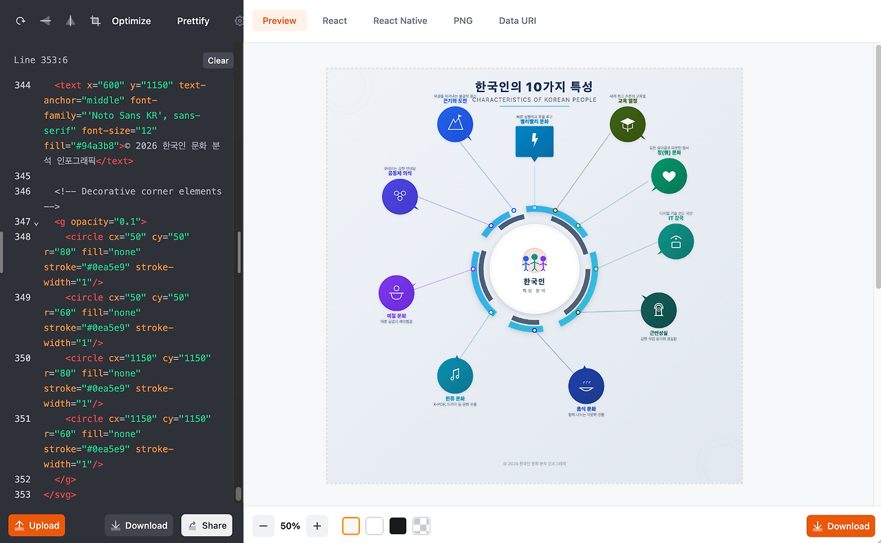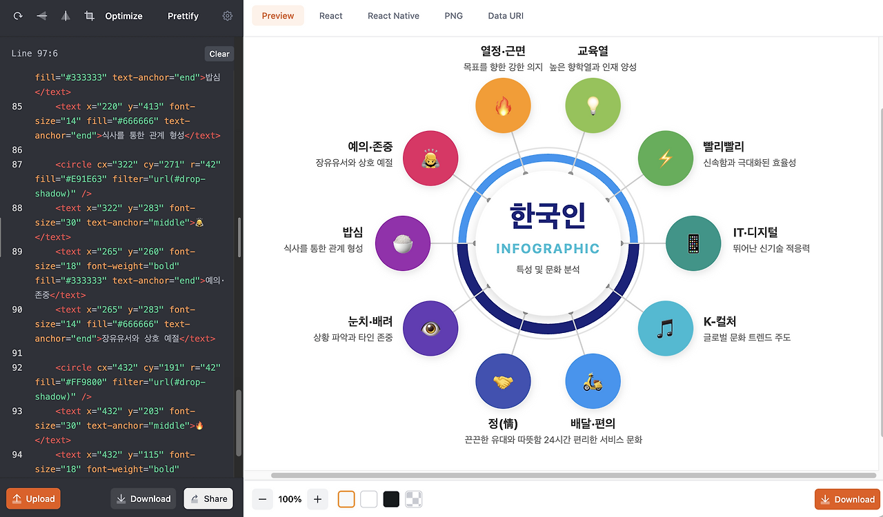 다시 SVG로 요청하면 이런 결과를 주는데 코드를 복사해서