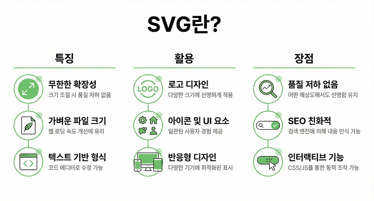 일반 이미지(jpg, png) 파일 대비 크기를 아무리 늘려도 깨지지 않고,