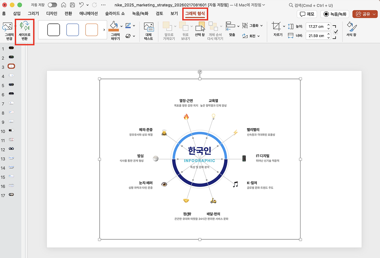 그래픽 형식 > 셰이프로 변환을 눌러요.