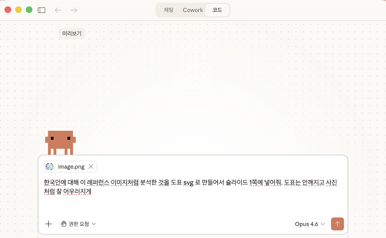 클로드 데스크탑 '코드' 탭에서 똑같이 요청했어요.