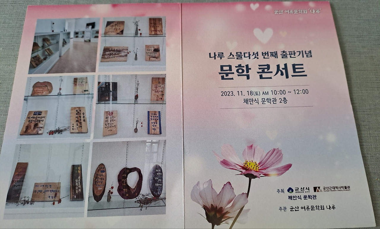 행사장은 군산의 대 문인 채만식 기념관이다. 지난해와 같이 여류시인님들의 출간한 책은 모두가 무료로 배포를 한다. 정말 책이 그립고 시가 그리운 분들은 이건 횡재를 만나는 거나 다름없다. 알만한 지인들과 서로 덕담과 따뜻한 안부를 묻는 것도 기쁜 일이다. 어려움을 뒤로하고 주부이기도 한 분들. 그분들 창작활동에 박수를 보내고 싶다.