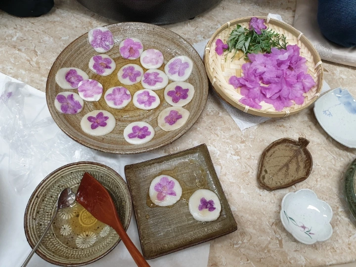 봄에 진달래 꽃을 따다가 화전놀이 하기