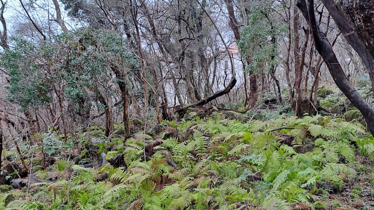 빨간 꼬마 기차를 타고 가다가 역에서 내려 구경하고 또 다음 기차를 타고 역을 4번 거쳐 테마 별로 구경을 하도록 되어있다. 이곳이 곶자왈이라고 한다. 어디에서도 볼 수 없는 식물과 동물 새들이 살고 있다는 설명을 해 준다. 꽃이 피는 봄이나 여름, 가을 계절에 따라 멋진 풍경을 보여 줄듯 하다. 우리가 온 2월은 볼 수 있는 풍경은 적지만 나름 이 계절에 느낄 수 있는 운치가 있다.