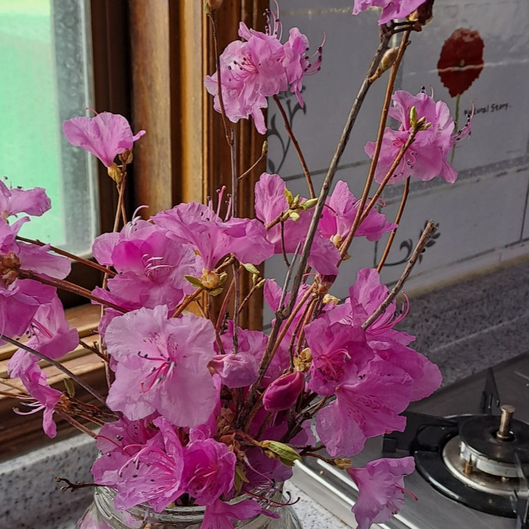 ' 나 보기가 역겨워 가실 때에는 죽어도 아니 눈물 흘리오리다.' 무슨 사연이 있었던 것일까? 소녀 적부터 좋아했던 소월의 진달래 꽃 사연이 궁금하다. 꽃을 꺾어 들고 큰집으로 들어가 병에 꽂아 놓는다. 금방 시들면 화전을 부칠 수 없기 때문이다. 꽃을 보면 누구나 마음이 환해진다. 다른 전을 부치고 화전도 부쳤다. 그리고 제사상에 올려놓았다. 평소에 사랑이 많으신 시어머님이 좋아하실 것만 같다.