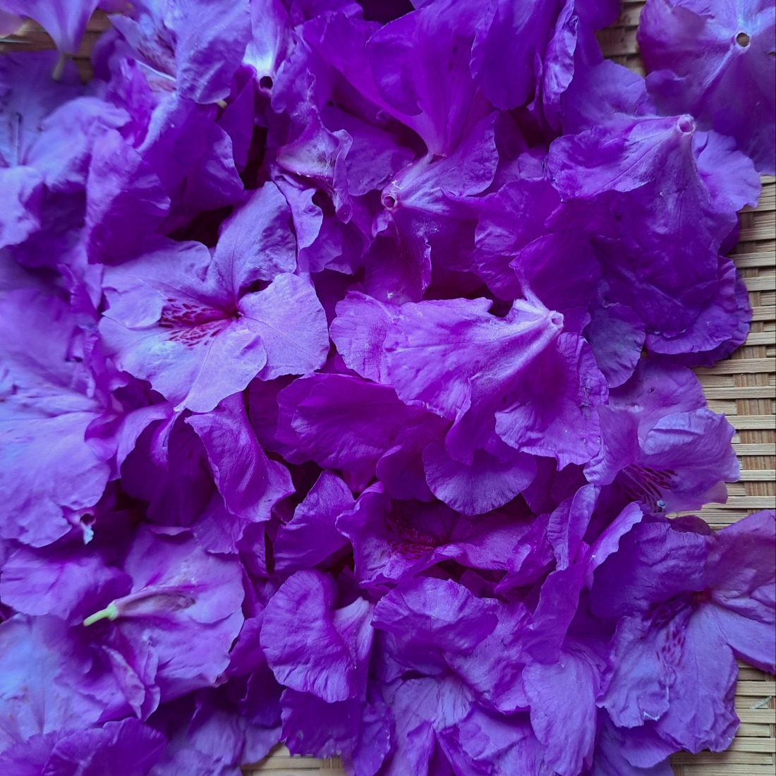 꺾어온 진달래와 화전을 부치기 위해 꽃술을 따 놓은 꽃잎