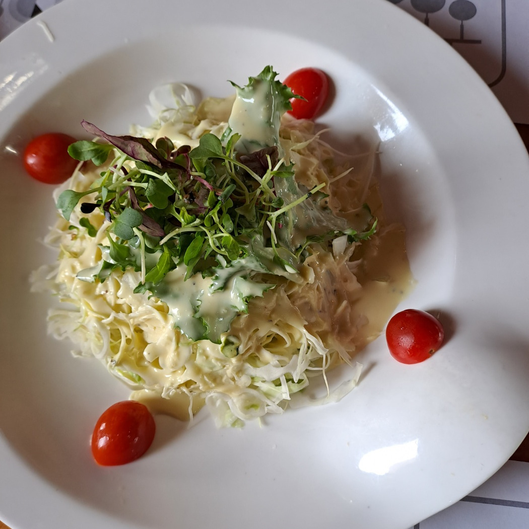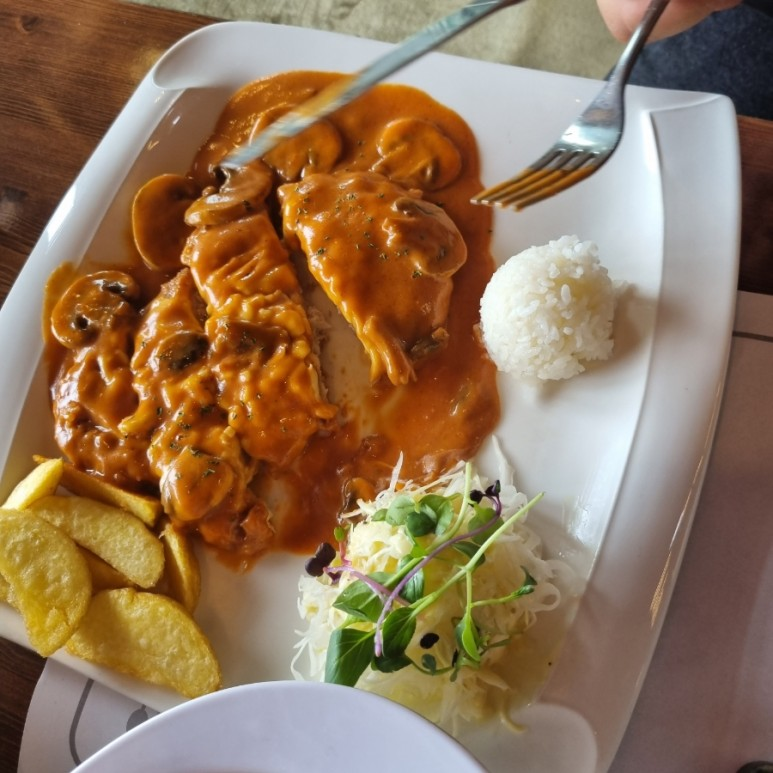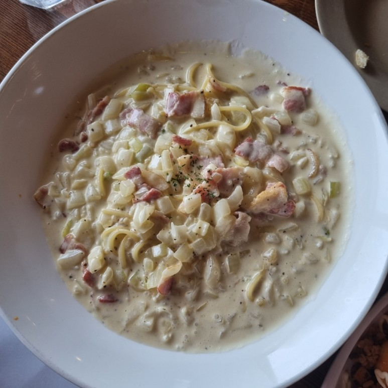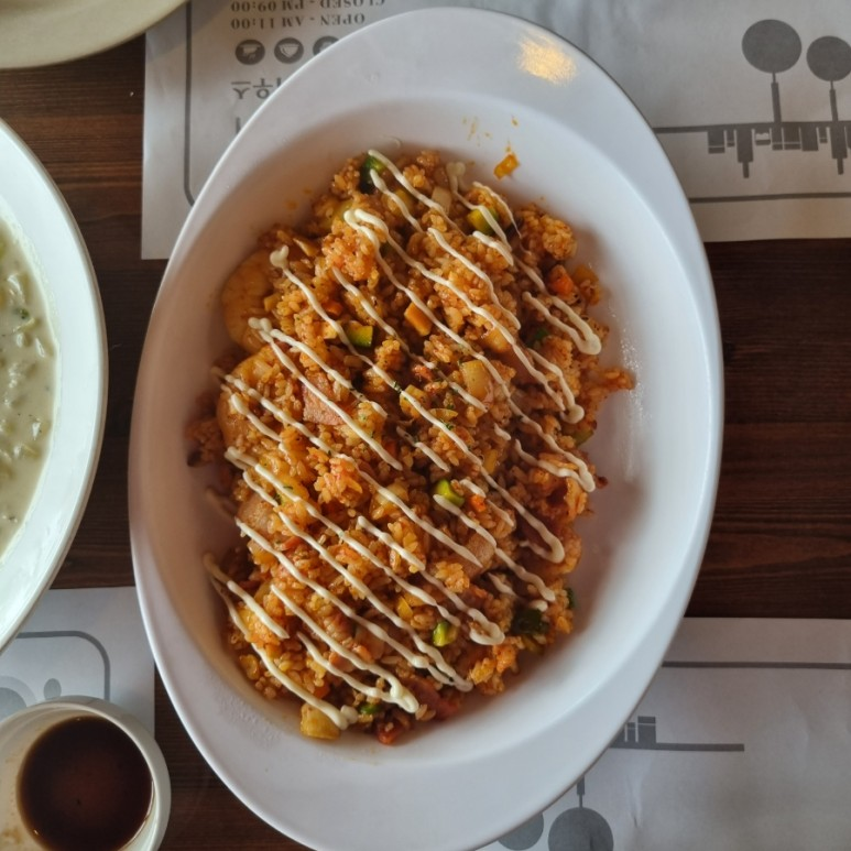 샐러드, 까르보나라, 돈가스, 칠리 새우 리소토