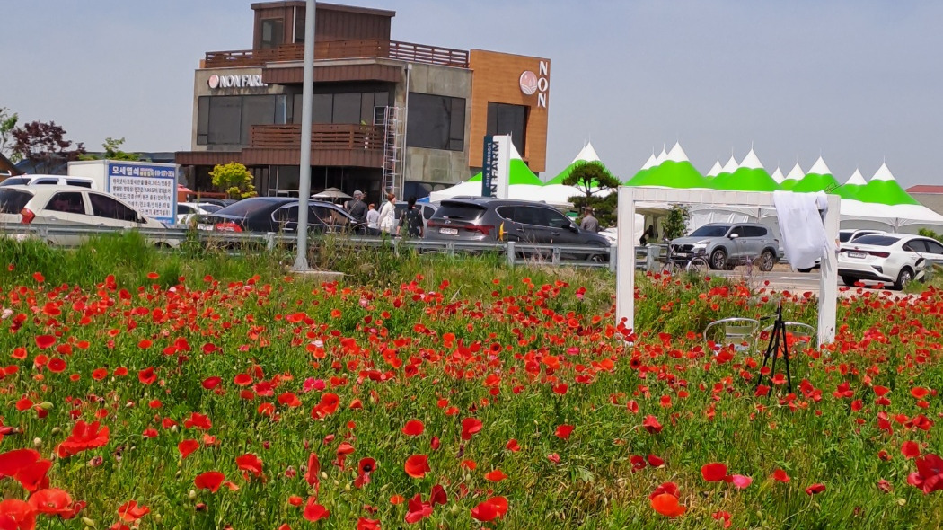 행사장은 흥겨운 노래와 먹거리들이 사람을 유혹한다. 우리는 몇 가지 음식과 잔치에 빠지지 않은 파전도 시켜 먹으며 흥겨운 노래 부르는 사람들 분위기에 젖는다. 모두가 즐거워한다. 양귀비 밭에서 사진 찍기 놀이도 하고 한 동안 시간을 보낸 후 집으로 돌아왔다.