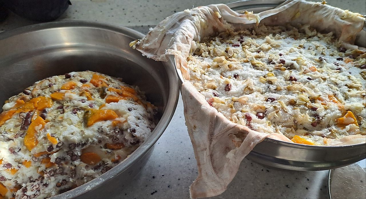 아카시아 꽃은 집으로 가지고 와 다듬는다. 오늘 꽃을 딸거란 생각도 못한 일이다. 순전히 트럭 아저씨의 선행에서 이루어진 일이다. 집에 와서 꽃과 잎을 분류해서 다듬고 쌀을 담그고 호박을 사다가 다듬고, 팥을 삶고 또 부산을 떤다. 며칠 후면 서울 올라갈 때 딸들 가져다주고 싶은 마음도 컸다.
