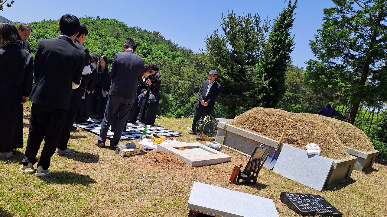 한 줌의 제가 되어 땅속으로 들어가 영원히 산자와 이별을 하는 순간, 목이 메어 한번 부르고 형님을 보낸다. 부디 저 세상에 가시어 아프지 말고 행복하셨으면 하는 소망으로 두 손을 모은다. 허망하고 헛되고 헛되다는 라는 성결구절이 생각이 났다. 형님은 땅에 묻히고 산자들은 덥다고 나무 그늘에 서 있으려니 바람은 세상에서 일어나는 일은 모르는 체 살랑살랑 불어 볼을 스친다.