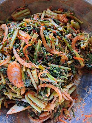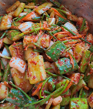 여름에 입맛 없을 때 강된장이나 고추장도 괜찮고 열무 비빔밥을 해 먹으면여름 한 끼는 거뜬하다. 반찬이 없으며 사 먹는다고는 하나 사 먹는 음식은 왠지 정이 가지 않는다. 양도 적고 비싸고, 엄마의 손맛과 같을 수는 없을 것이다. 김치를 담가 식탁에 올려놓는다. 딸과 사위가 가져가 맛있게 먹을 생각에 마음부터 흐뭇하다.