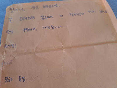 참 기특하고 고마운 우리 막내 손자,결혼할 때까지 살면 내 나이 얼마나 될까? 그때는 100살이 넘어야 할 텐데, 손자의 희망 사항은 마음만 받아야 할 것 같다. 손자의 마음이지만 응원과 함께 손 편지가 마음을 따뜻이 데워 준다. 가족과 모이는 생일은 언제까지 일지, 비가 와서 움직일 수가 없어 밥만 먹고 헤어지려니 섭섭해 온다.