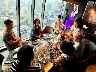 식사가 끝난 뒤 생일 이벤트를 딸들은 한다. 감사하게 셰프가 생일 축하한다는 글씨를 써서 디저트 선물을 해 주었다. 세상에, 신경 써서 만들어 주신 그분에게도 감사하다. 막내 사위도 늦게야 도착을 하고 서울에 사는 가족이 다 모였다. 가족이 다 모이는 것은 연말이나 아님 가족 행사가 있을 때 모이기 때문에 일 년이면 몇 번 못 본다.