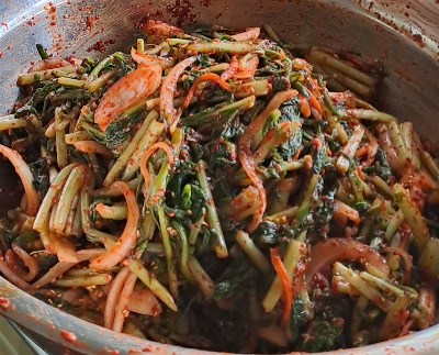 요즘은 고구마 순 김치 담가 먹는 철이다. 김치도 때에 맞추어 담가 먹어야 맛있다. 고구마 순 김치도 먹어야 할 때가 있다. 조금 있으면 질기고 맛이 줄어든다. 시장에 나가 고구마순 한 박스, 깻잎 한 박스, 열무 한 단 얼갈이배추 한 단을 사다가 놓으니 마치 김장하듯 푸짐하다.