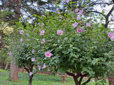 어름덩굴들 우리나라 꽃 무궁화 꽃이 선명하다