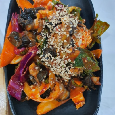 하구 뚝 바다가 보이는 식당은 차가 많이 주차되어 있었다. 차가 많을 걸 보면서도 그 집의 인기를 알 수 있었다. 식당 안은 제법 넓은데도 사람이 꽉 차 있었다. 메뉴는 한 가지로 우렁 쌈밥이다. 사람도 많았다. 웬 사람들이 그리 많은지 깜짝 놀랐다. 사람이 많이 모이는 데는 이유가 있다. 음식이 나왔는데 푸짐하다. 돼지 불고기에 양배추에 우렁을 무쳐 놓은 음식은 새콤하고 맛있었다.
