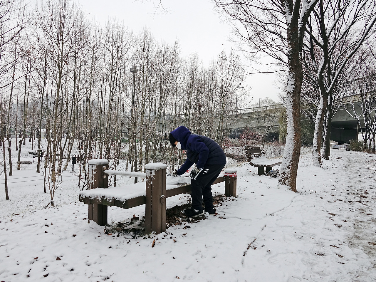 눈 쌓인 아파트 정원