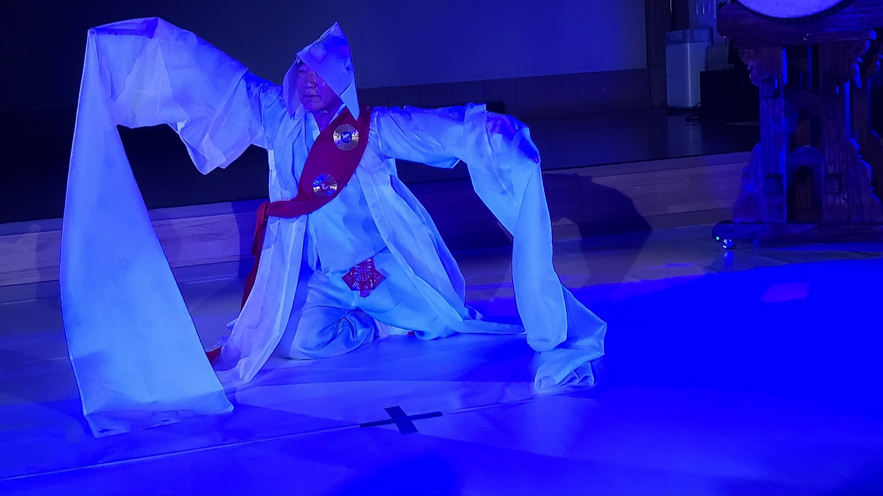 군산 세계 무용축제 일곱 번째 날이다. 11일 저녁 5시 드디어 우리 회원이 공연 문은 여는 순서다. 집에 계시는 남편과 동생도 손님으로 부르고 연습을 많이 했기 때문인지 모두가 긴장하지 않고 차분한 모습으로 입춤을 추기 시작했다.