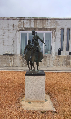 또다시 움직여 우리는 부안에서도 유명한 휘목 미술관에 도착했다. 겉에서 보기엔 건물은 낡아 보이지만 이도 콘셉트처럼 근사하다. 널따란 마당에는 아름다운 조각작품들이 우리는 반겨 주는 것 같았다. 이곳저곳 사진을 찍고 내부로 들어가니 고급진 가구들과 멋진 카페 분위기에 압도되었다. 커다란 티브이에서는 목소리 고운 가수의 음악이 흐르고 있다.
