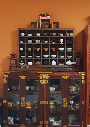 다시 이동을 하여 군산대 평생 교육원에서 수업을 하고 계시는 교수님 댁을 방문했다. 산자락 아래 고즈넉이 자리한 집은 소박했지만 그 안에 들어가니 아득하고 난방을 잘해 놓아 아주 따뜻했다. 많은 차 도구와 옛날 물건들을 많이 모아 놓아 아주 편안한 분위기다. 차와 차 도구만 바라보아도 마음이 편하다.