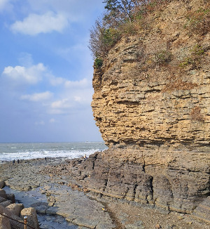 채석강 풍경 절벽이 마치 수만 권의 책을 쌓아 놓은 모습