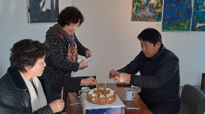 내가 좋아하는 팥죽을 먹었다. 우리는 점심을 먹고 시내에서 떨어진 '선유공감'이란 카페에서 차도 그림을 전시하는 갤러리로 향했다. 그곳에는 시 낭송 선생님 사모의 그림이 전시되어 있어 보는 것만으로도 즐겁다. 비구상이라는 그림을 보면서 그 사람의 재능을 한번 더 알게 되고 사람이 달라 보인다. 존경스러울 정도다.