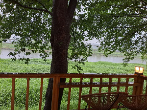 텐트 형식 호텔 숙소 숙소 앞에서 독서를 하면서 풍경을 감상하는 곳