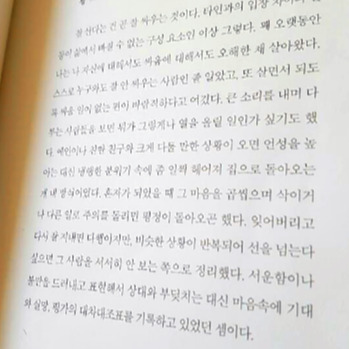 사람은 세월에 따라 나이가 들어가서 변화가 온다. 살면서 내 방식이 아닌 일로 다툼이 올 경우에도 사람들과 부딪치지 않으려 피하기도 했다. 누군가와 상처를 안고 산다는 것은 내 영혼이 파괴되는 느낌에 행복하지가 않았고 삶에 고통이 되기도 했으니까. 황선우 작가의 말처럼 싸울 상황이 오면 " 피하거나 자꾸 선을 넘는 일이 반복되면 그 사람을 안 보는 쪽으로 마무리를 한다. "서로 다투고 상처를 내는 게 의미가 없겠구나 하고 결단은 내렸다.