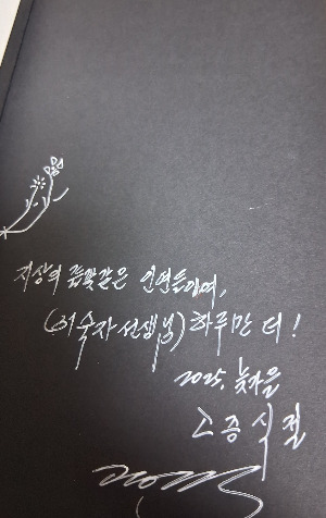 김영춘 시인님의 사인, 붓글씨 글씨가 참 예뻤다. 시인님의 미소도 순진한 소년 같아 인상적이었다.