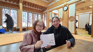 4 사람이 한차를 타고 도란도란 이야기하면서 가다 보니 완주 전통 마을 문화 체험장에 도착을 한 후 접수하고 회비를 내면 그곳에 모인 시인 시집 2권은 무료로 준다는 말에 나는 느낌으로 시집 2권을 골랐다. 시인님들은 거의 도착을 하신 듯 모두 방에 옹기종기 모여 앉아 계신다. 시집을 고르고 바로 사인을 받는다.