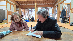 그러나 또 하나의 행사가 나를 기다리고 있어 꽃단장을 하고 나가야 한다. 편한 자리라면 바지에 두툼한 패딩만 걸쳐 입으면 편 할 텐데, 처음 보는 시인들 앞에서 시 낭독도 해야 해서 버선발에 고운 색 누비 상의와 명주 검정 치마를 입고 멋을 내 본다. 누가 옷에 신경 쓰는 사람이 있을까 만은, 장소에 따라 의상을 갖추어 입어야 하는 게 예의라 생각한다.