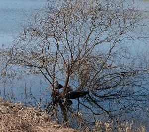 은파 호수에서 한가로이 헤엄치고 있는 물오리 나뭇가지 위에서 잠시 쉬고 있는 오리 한쌍