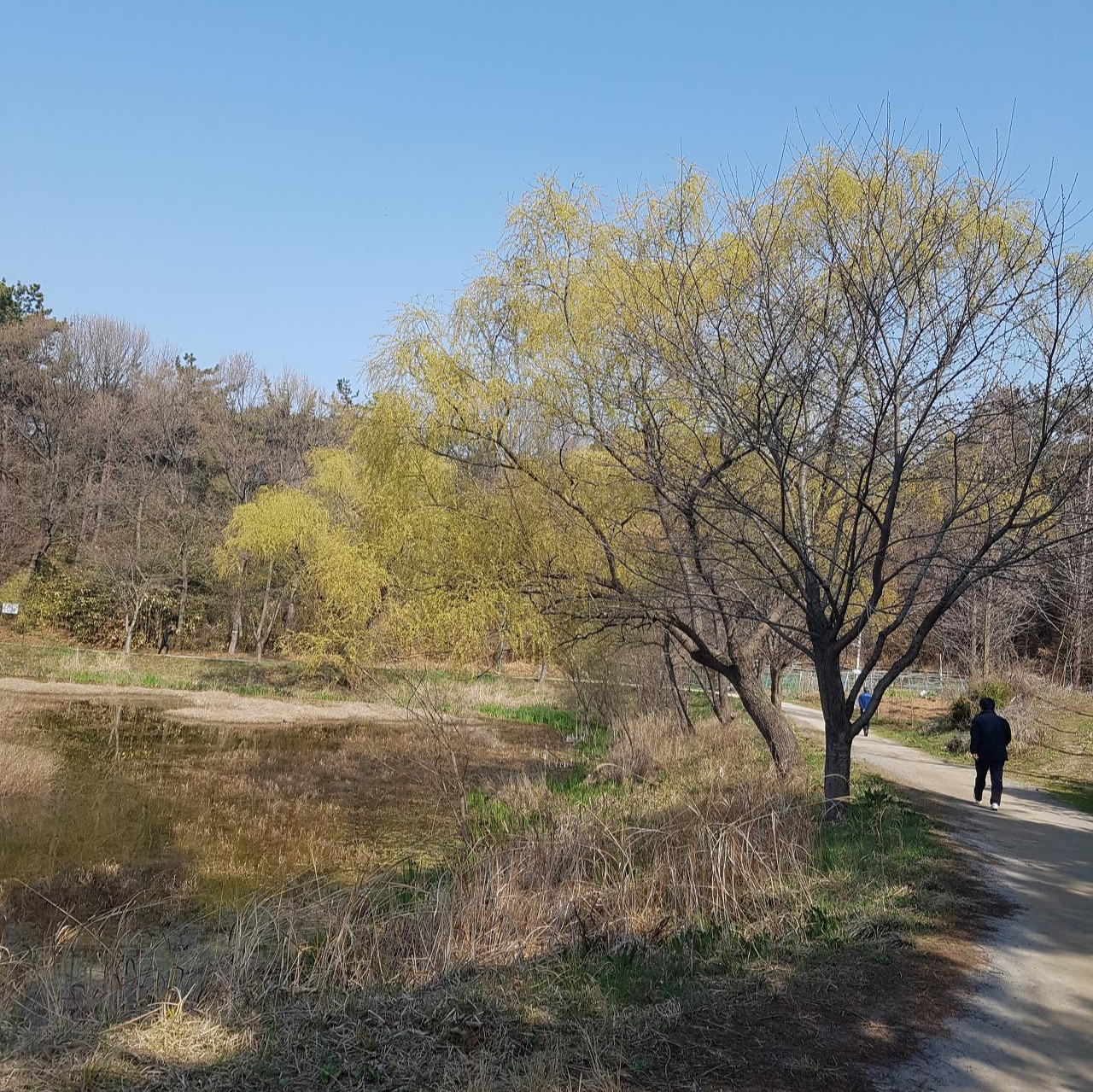 산책을 하며 눈에 보이는 모든 물체와 볼에 스치는 바람도 봄의 기운이 느껴진다. 호숫가 버드나무 가지에도 새순이 올라오고, 걷고 있는 옆 산 자락의 찔레나무에도 초록의 새순이 올라오고 있다. 죽은 듯한 빈 가지에는 꽃망울이 조롱조롱 매달려 있다. 내가 보고 있는 풍경들이 봄이 왔다고 합창을 하는 듯 하다.